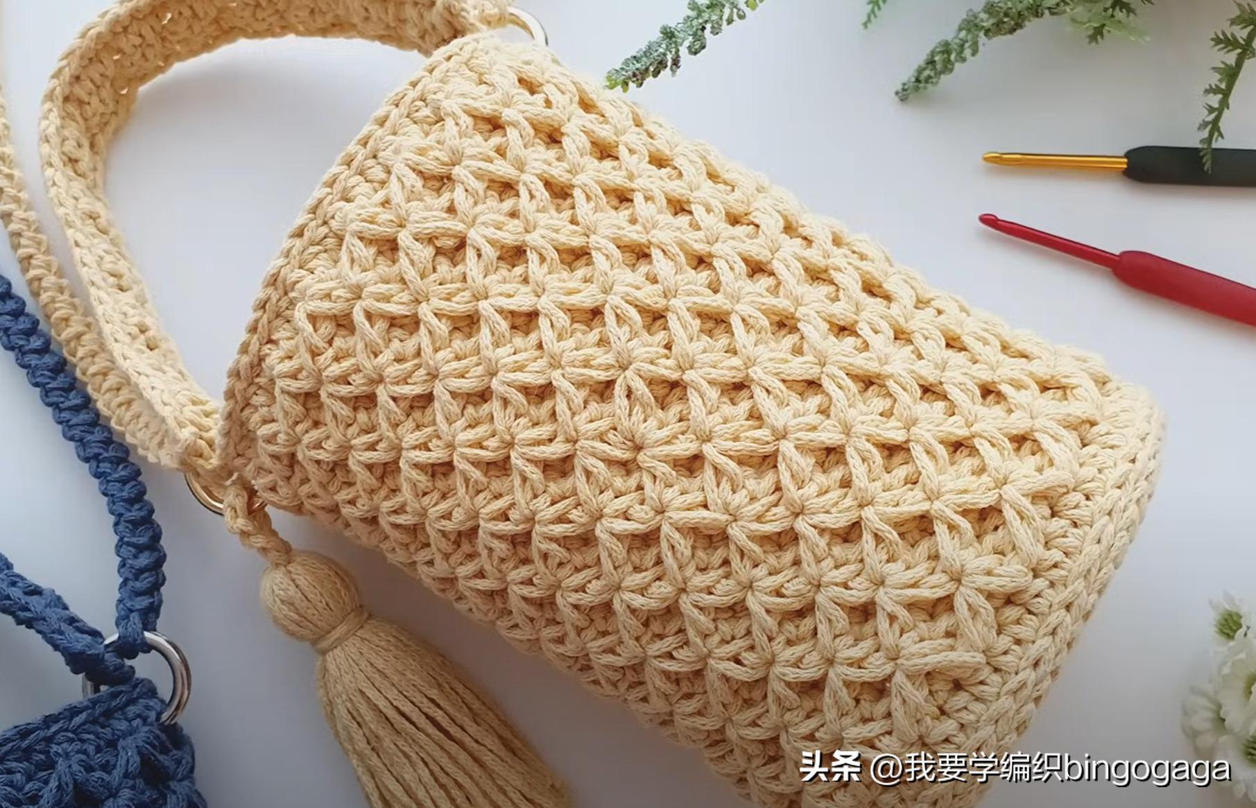 这次又是带来一款筒包的教程,因为圆筒包外形可爱,内容量却不小,使用也很方便。今天我们学习的是一款蝴蝶蜂窝花迷你筒包的钩法,示范用线:2mm空心棉,3.5mm的钩针。